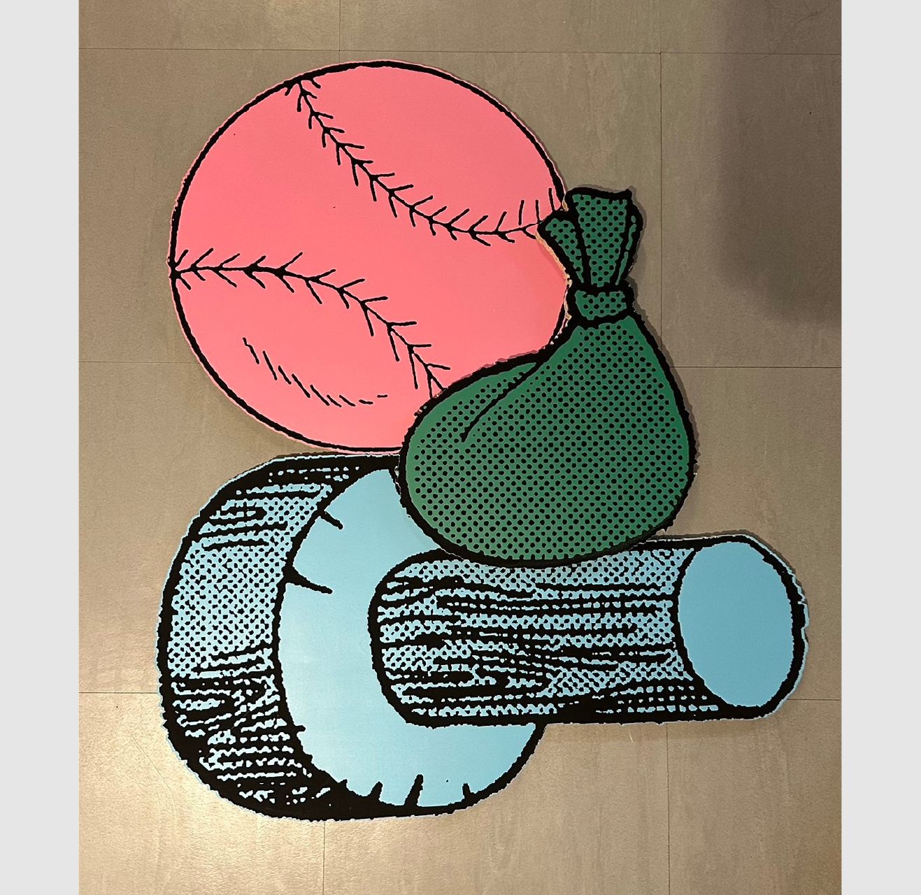 漫画の場面の片隅に置かれている物体を切り抜き、収集して、建築用の合板にシルクスクリーンでプリントして切り抜くことで物体化し、それを現実空間で再構成した作品である。ストーリーとは直接関係のない「無意味な物体」を元の漫画の文脈から切り離し、切断と接続、現実と空想、二次元と三次元、物語と物語、歴史と歴史を複雑に往還している。