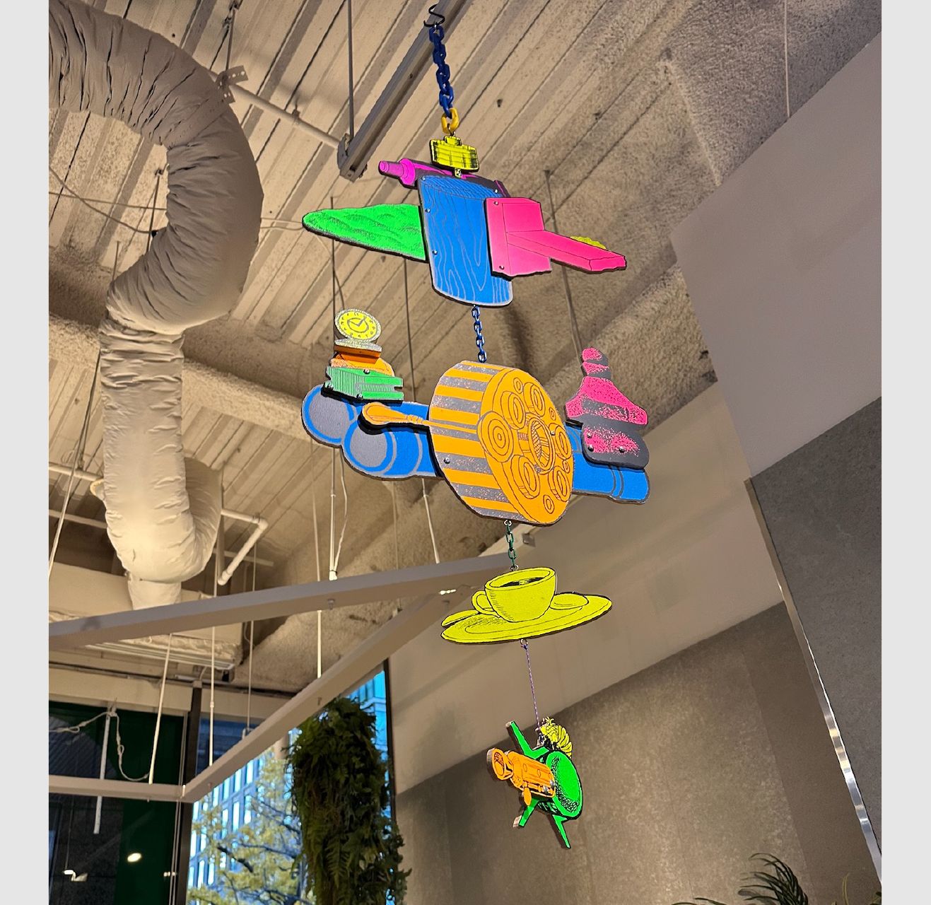 例えば、建築物、建築資材などの都市のイメージや、音や煙などの形の無いものや形の定まらないもの、惑星などの巨大なものと観葉植物やコーヒー、ボールなどの身近なもの、UFOなどの謎を含んだイメージなど、かけ離れた文脈やスケールを往還するような構造物から新たな想像を紡ぎ出したいと考えて制作した。