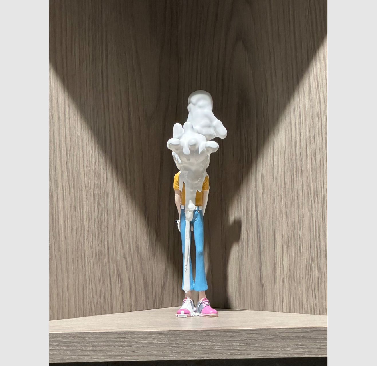 さまざまなフィギュアに白い樹脂をかけることで、バラバラな個性が多様なままグループに見えてしまうという作品群。