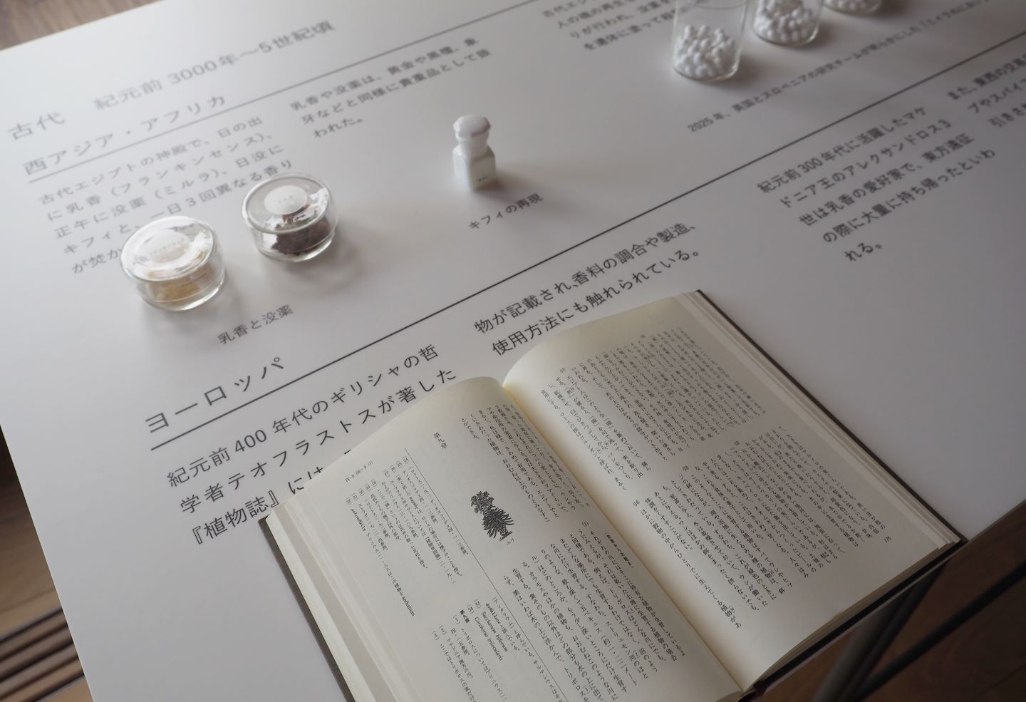 平安貴族たちのステイタスでもあった薫物の中でも、特に人気だった香りの処方を再現して展示。
